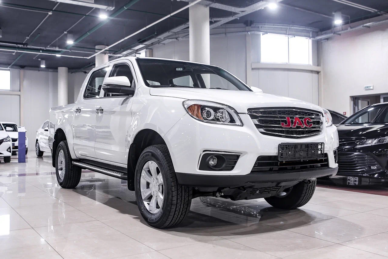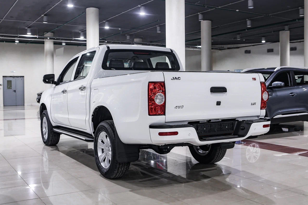 Внешность китайского пикапа JAC T6 в действительности внушительна. Автомобиль выглядит мощно и немного грозно. Все из-за размеров пикапа. Достаточно только взглянуть на 17-дюймовые диски и высокий клиренс. По мощному внешнему виду сразу становится понятно, что автомобиль проедет не только по городским дорогам, но и в труднопроходимых местах.